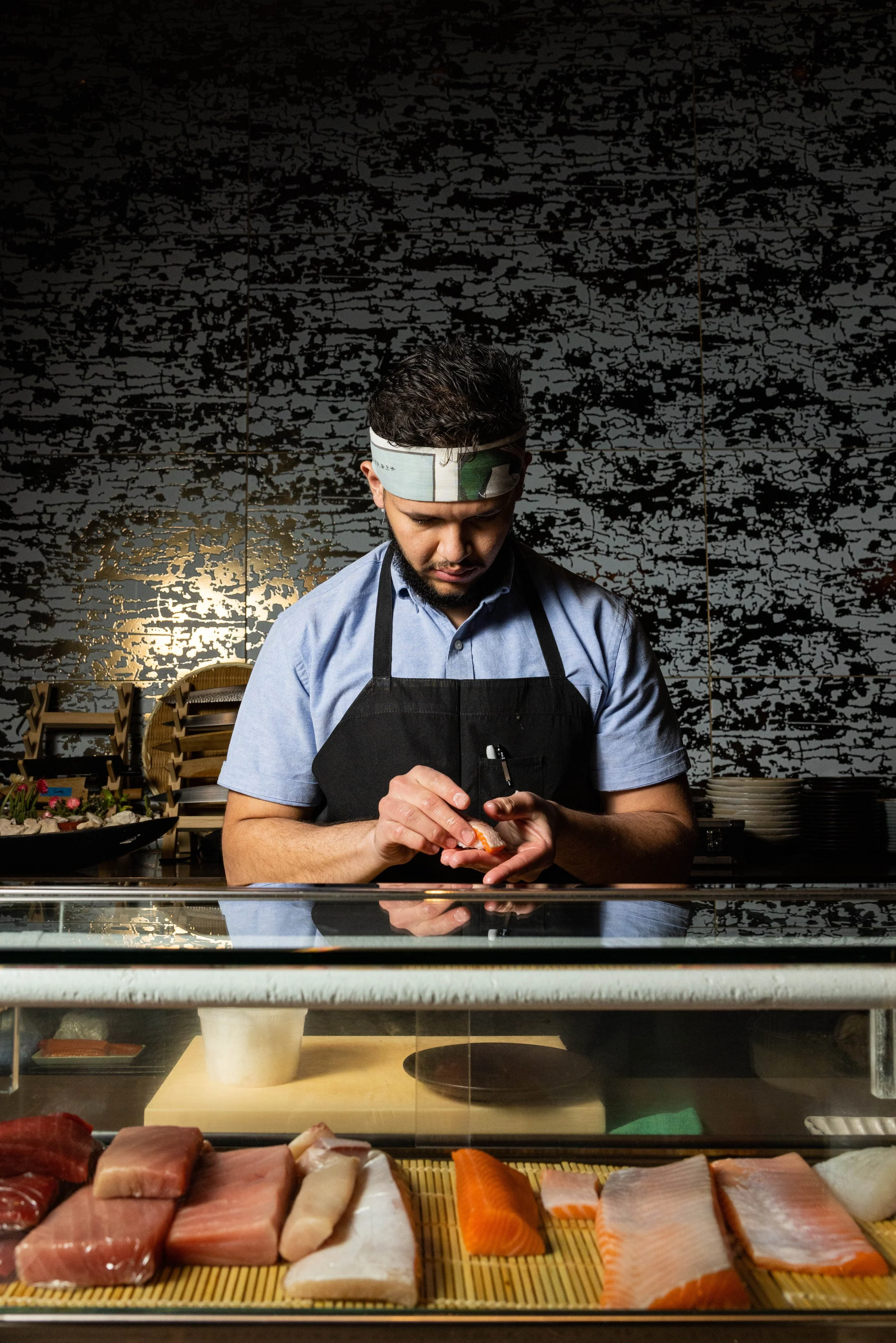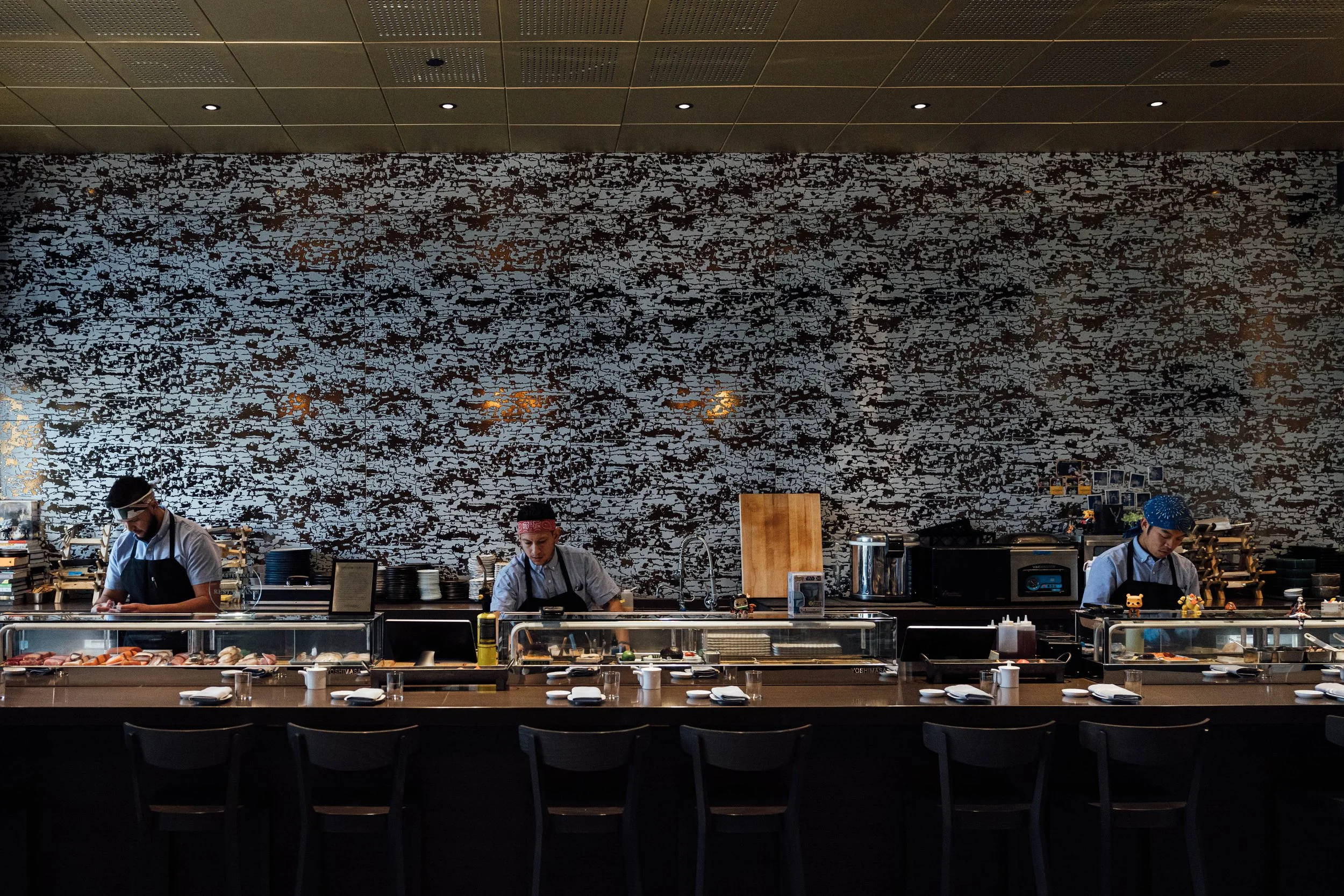 Aiko Aiko is an modern upscale sushi bar with a full sushi menu and multiple omakase options. To highlight the elements of the dining experience and detail of each dish, we kept the photography clean with darker tones.